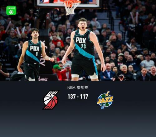 第四节,前半节爵士科利尔站出来持续冲框得分,开拓者乐福给予回应,后半节上来爵士努尔基奇、克莱顿相继得分追至20分上下,比赛最后2分钟杨瀚森终于替补登场,上来内线勾手得分,随后再度强攻造犯规罚球全中,全场结束,开拓者137-117爵士。